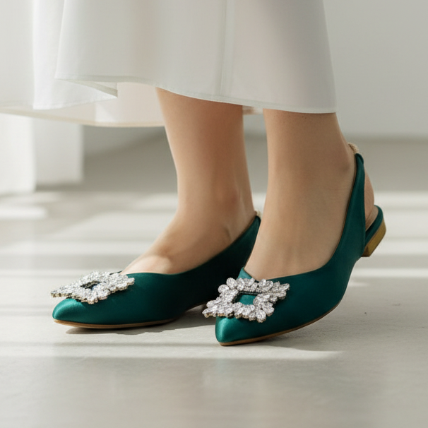 Expertly crafted and stylish, the Grace Up Flats 639 feature a flat slingback design adorned with a stunning stone brooch. Perfect for any occasion, these flats offer both comfort and elegance. Elevate your outfit with the added touch of luxury provided by these beautiful flats.