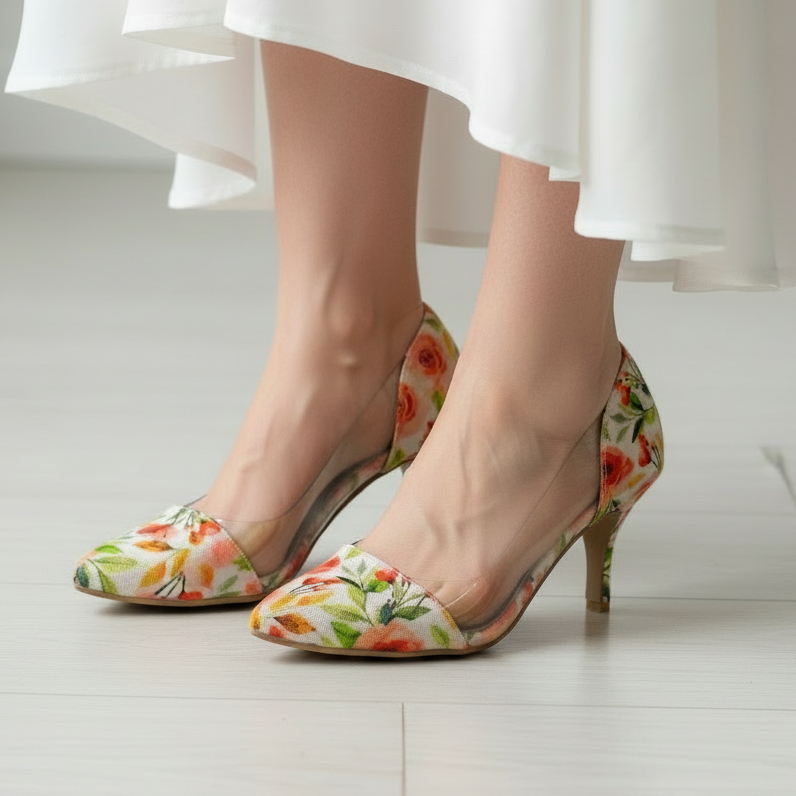 Elevate your style with Grace Up Heels 0402. These chic heels feature a stunning floral print and transparent side panels for a unique touch. With a comfortable fit and eye-catching design, these heels are perfect for any occasion. Step out in confidence and make a statement with Grace Up Heels 0402.