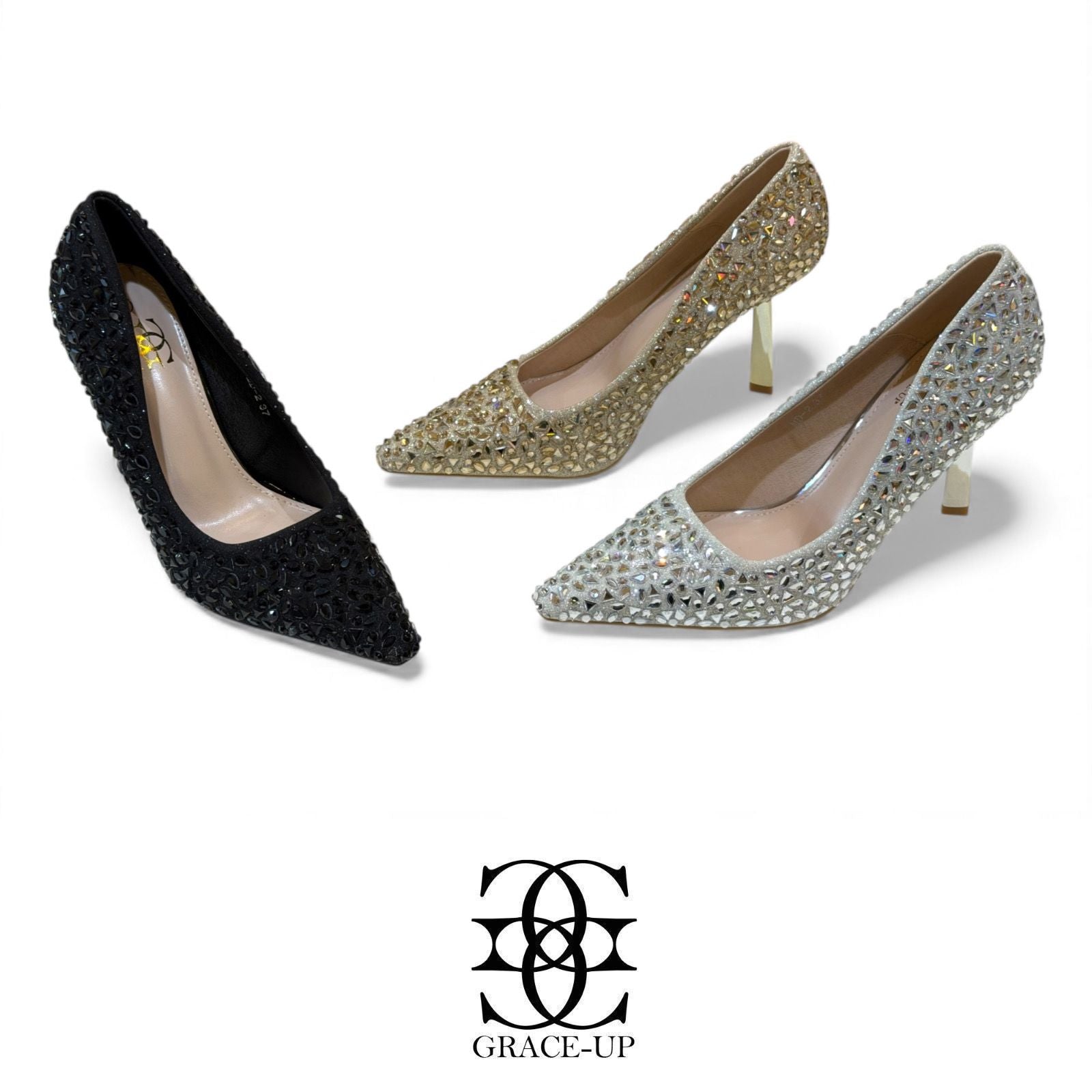 Elevate your wedding ensemble with our Grace Up Heels 510. Crafted with a timeless court design, these shoes are adorned with shimmering rhinestones for a touch of glamour. Slide into unmatched comfort and elegance on your special day.