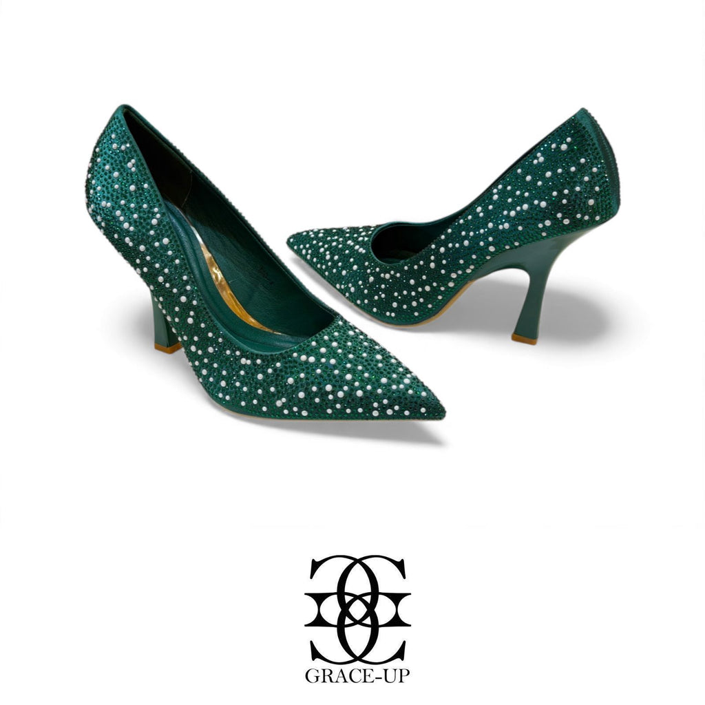 Elevate your style with Grace Up Heels 512. These court shoes feature a shimmering design of rhinestones and pearls, adding a touch of glamour to any outfit. Expertly crafted for comfort and luxury, these heels are perfect for special occasions or everyday wear. Upgrade your shoe collection with Grace Up.