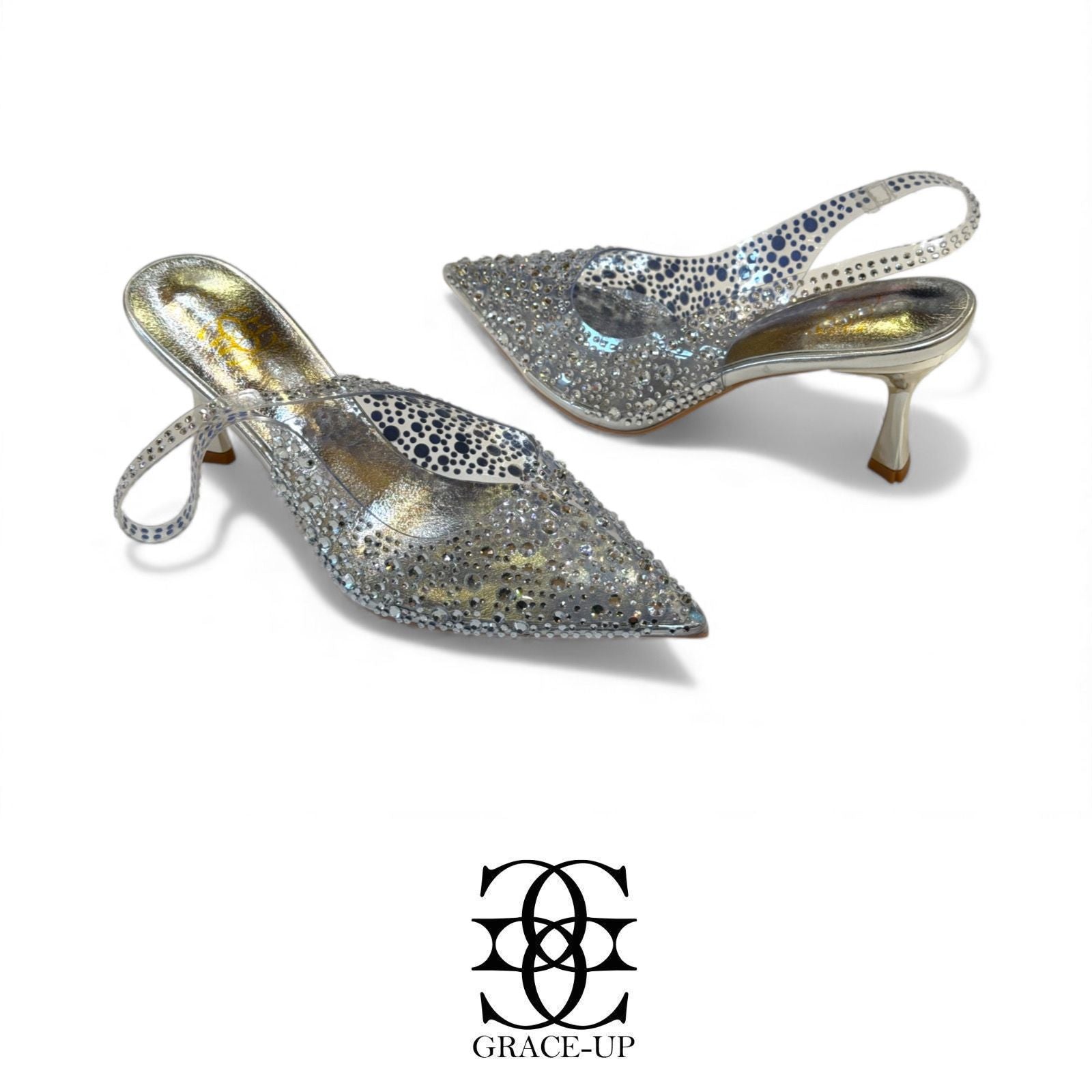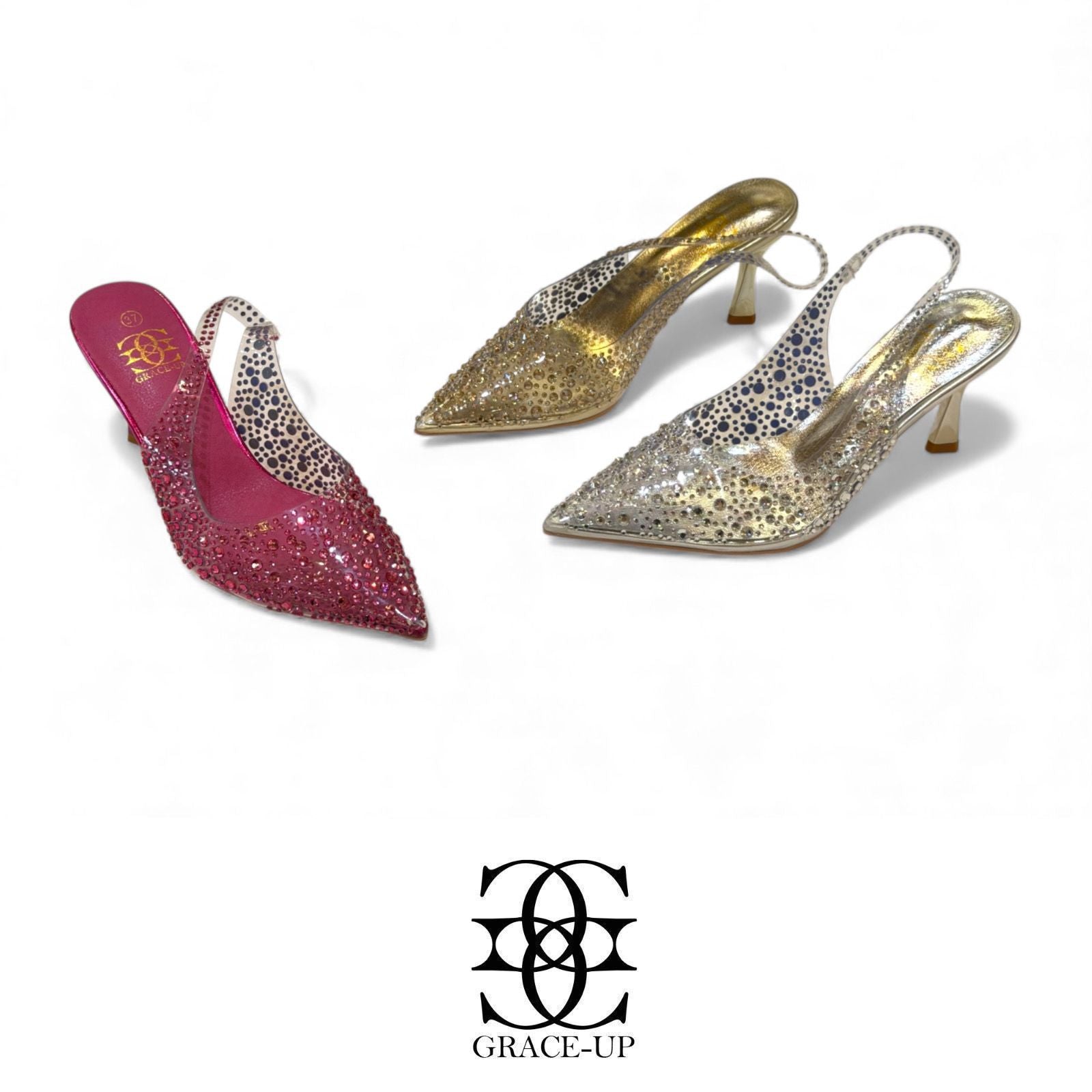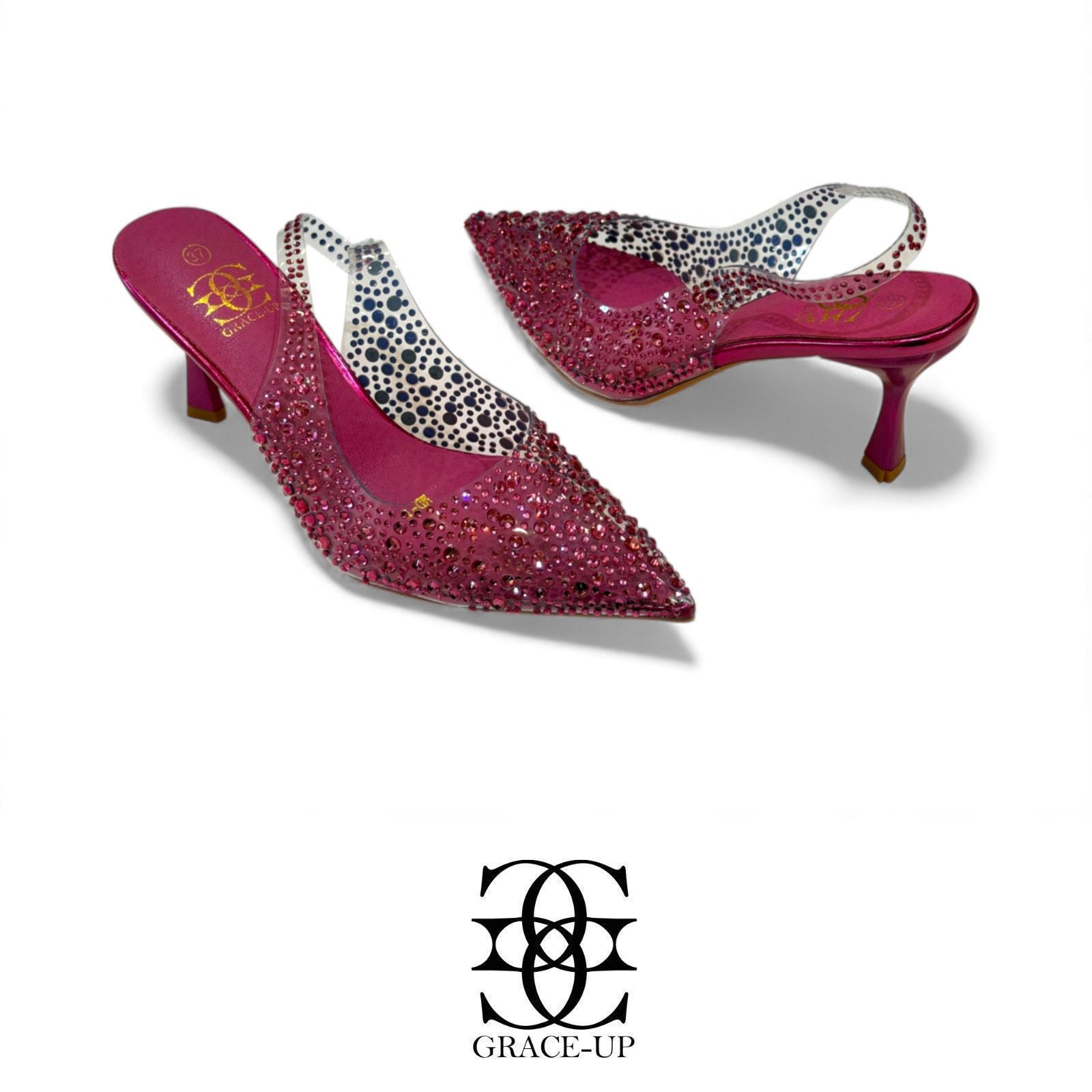 Experience elegance and comfort with Grace Up Heels 513. Featuring a transparent slingback design adorned with sparkling rhinestones, these heels will elevate any outfit. The perfect combination of style and support, they are a must-have for any fashion-forward individual.
