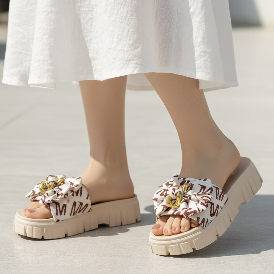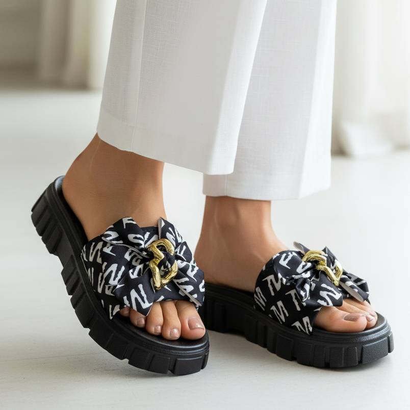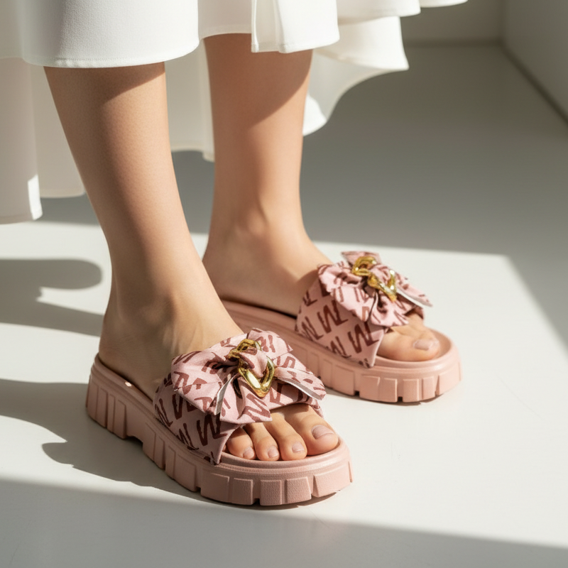 Introducing the Grace Up Softie S16 slides, designed with a thick rubber sole for ultimate comfort. Featuring a printed bow for added style, these slides are the perfect combination of comfort and fashion. Treat your feet today with our Grace Up Softie S16 slides.