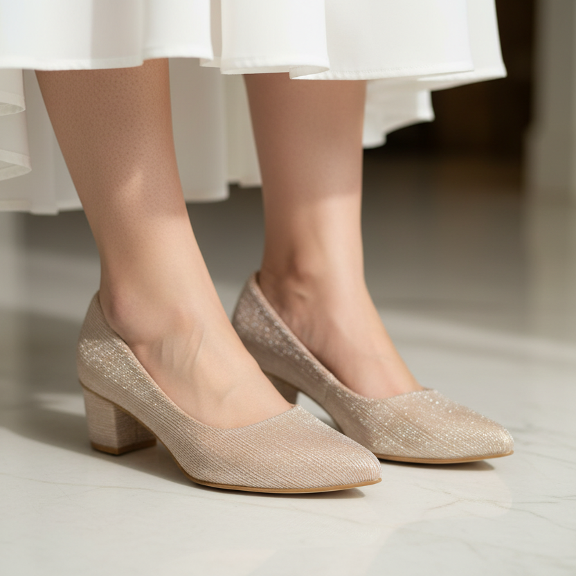 Stylish shimmery block heels are perfect to be paired with elegant attires. Wear these at your events and be a fashion statement.