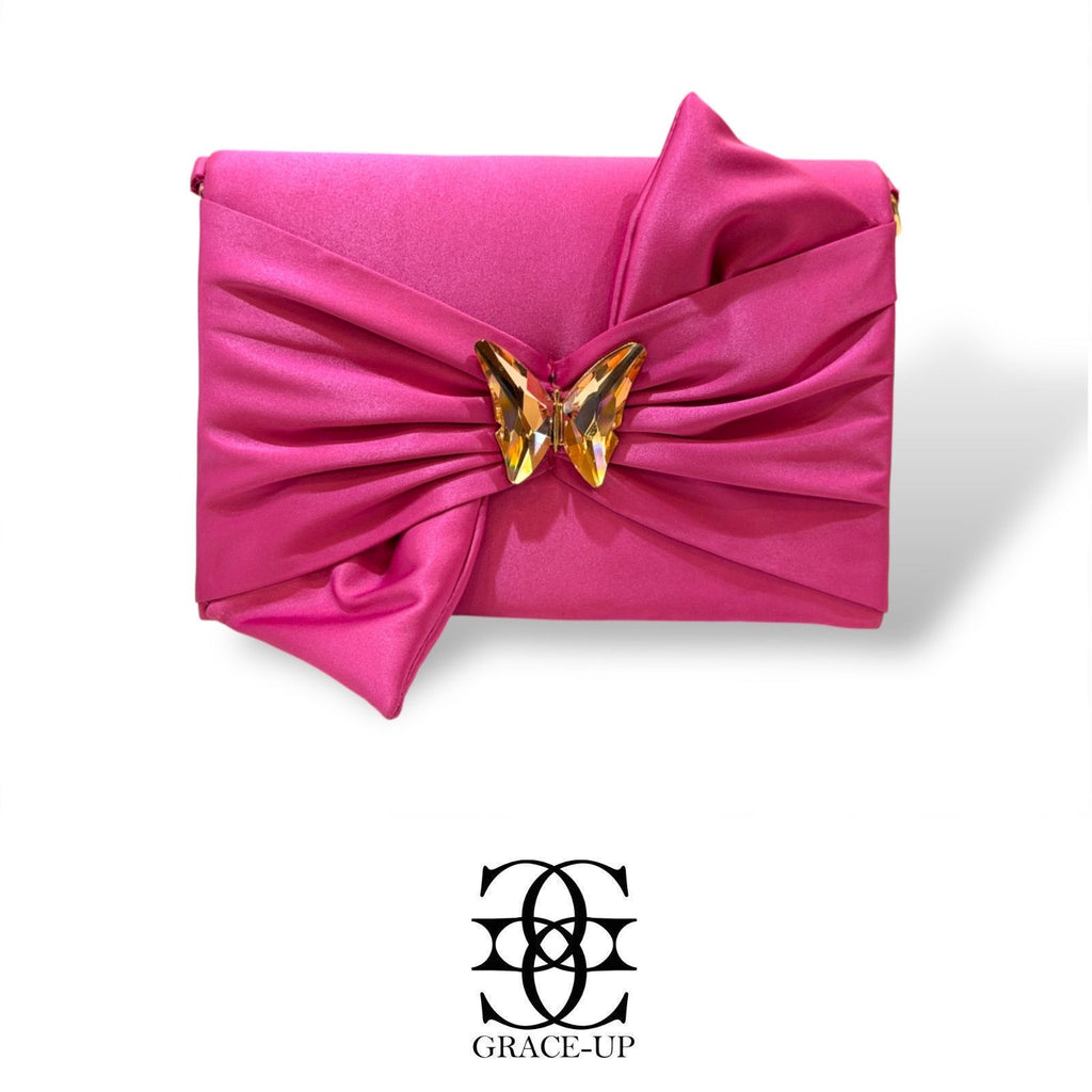 A perfect clutch bag for party use! Featured bow design with butterfly stone buckle .Contains complementary chain for hassle free wear!