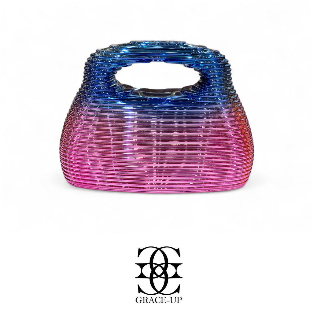 A perfect clutch for party wear ! Featured blue & pink color hard plastic metallic look case . Contains complimentary chain for hassle free wear!