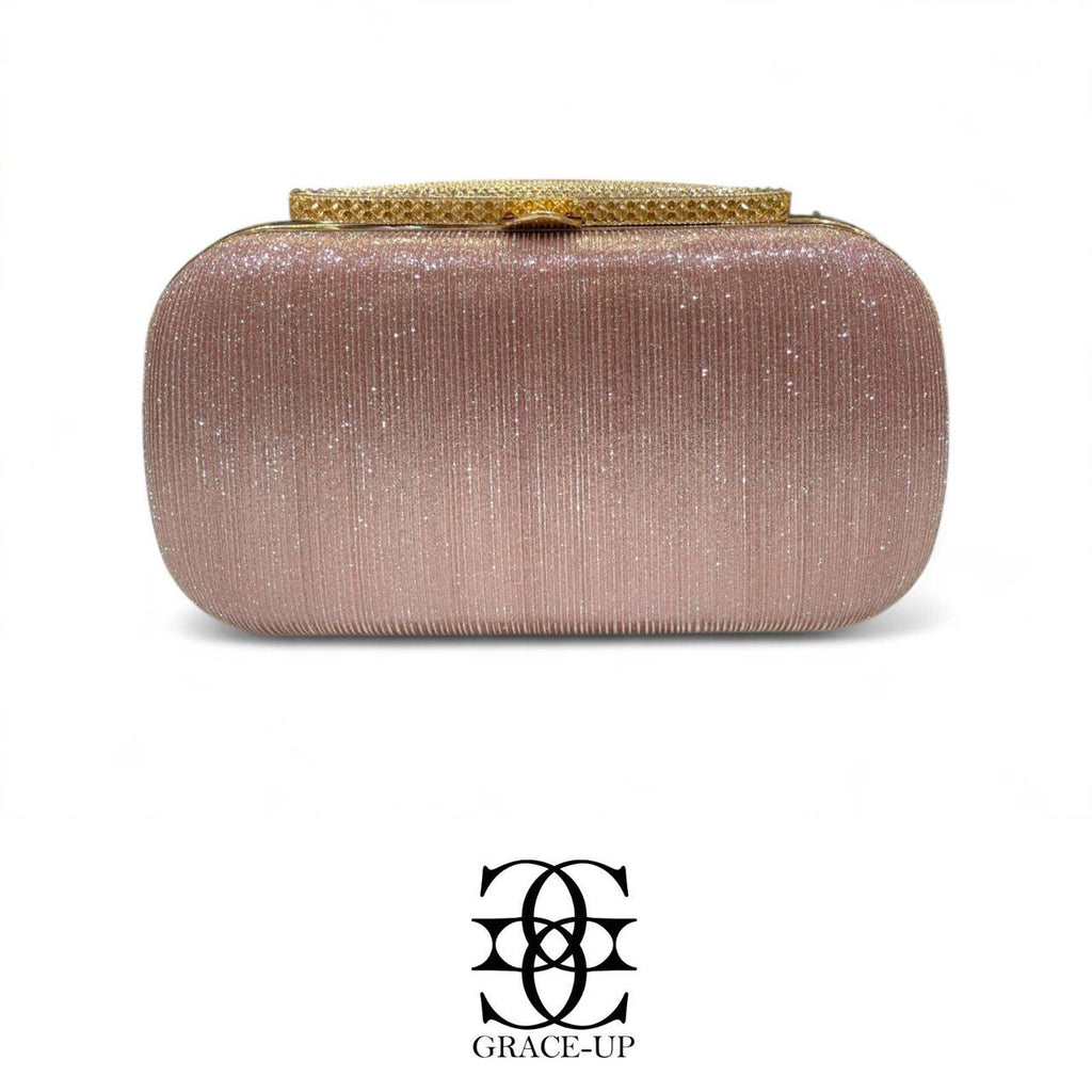 A perfect clutch for brides! Featured peach glitter & long metal nob. Contains complimentary chain for hassle free wear.