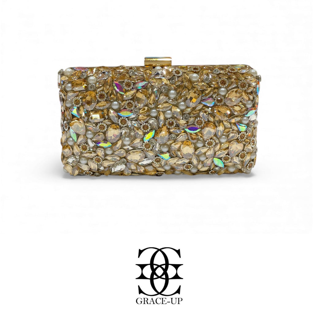 A perfect clutch for Brides! Featured golden/silver big stones single side & metal case. Contains complementary bangle for hassle free wear!