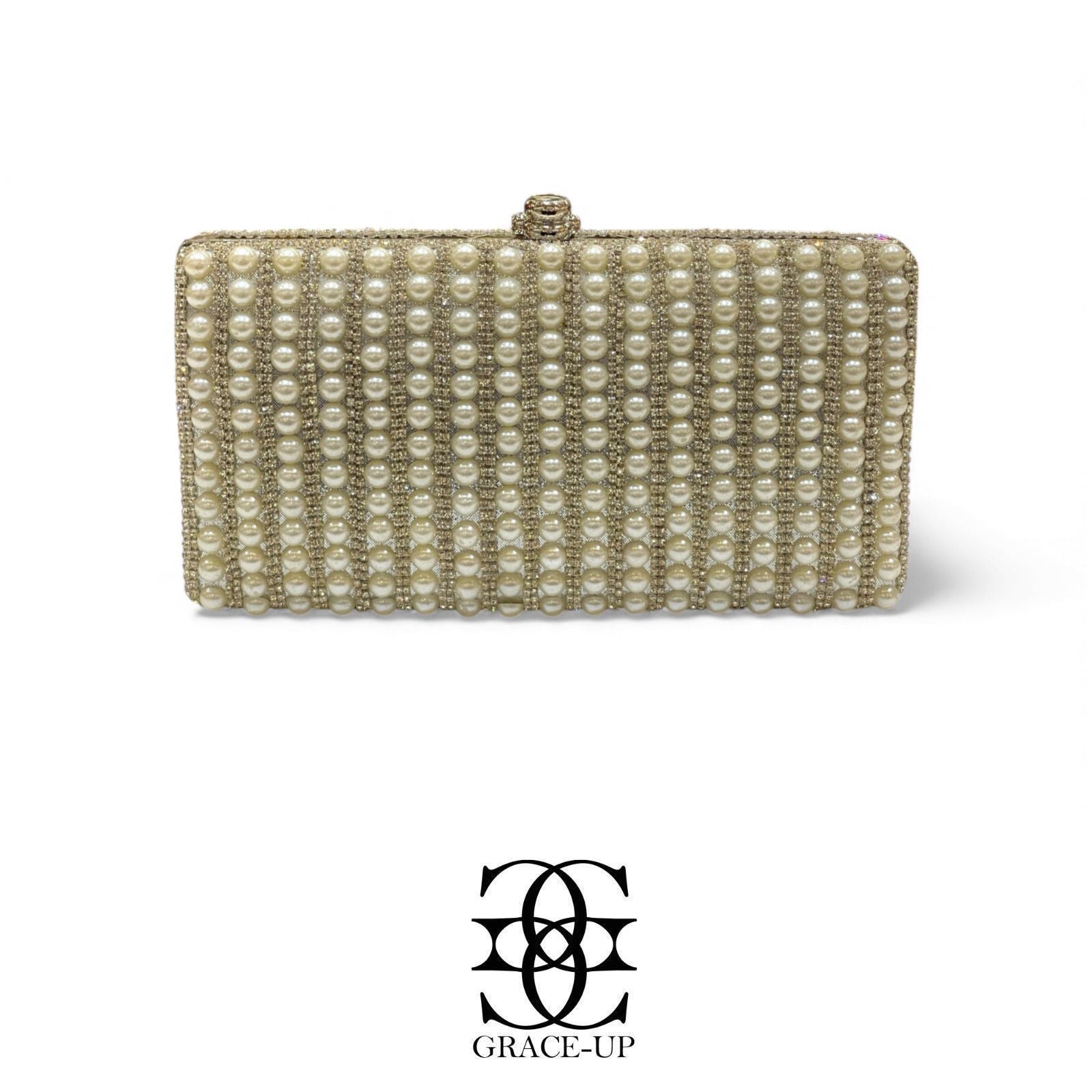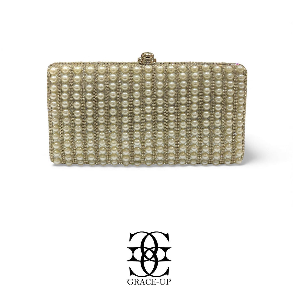 A perfect clutch for Brides! Featured silver stones with pearls double sided & metal case. Contains complementary bangle for hassle free wear!