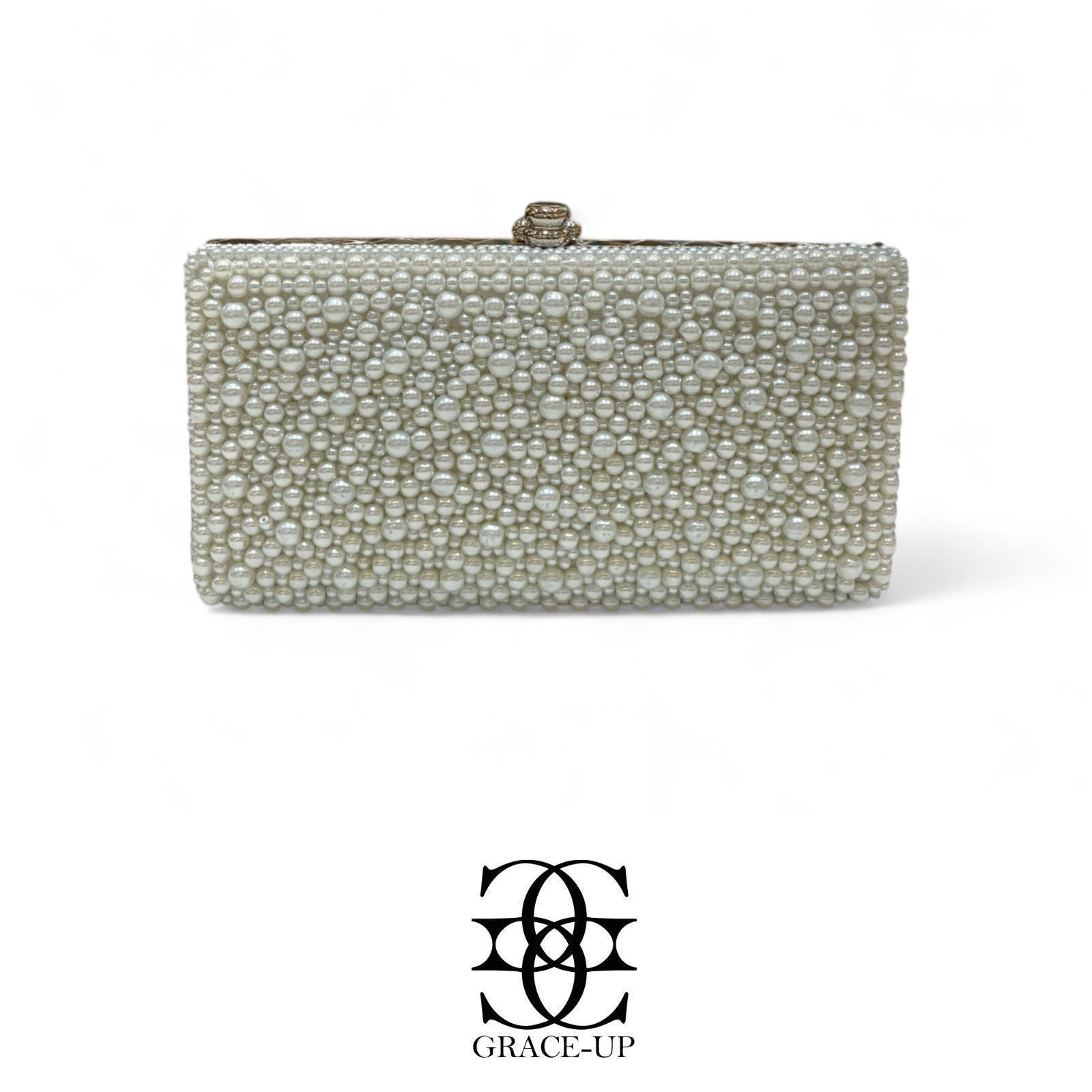 A perfect clutch for Brides! Featured full pearls single side & metal case. Contains complementary bangle for hassle free wear!