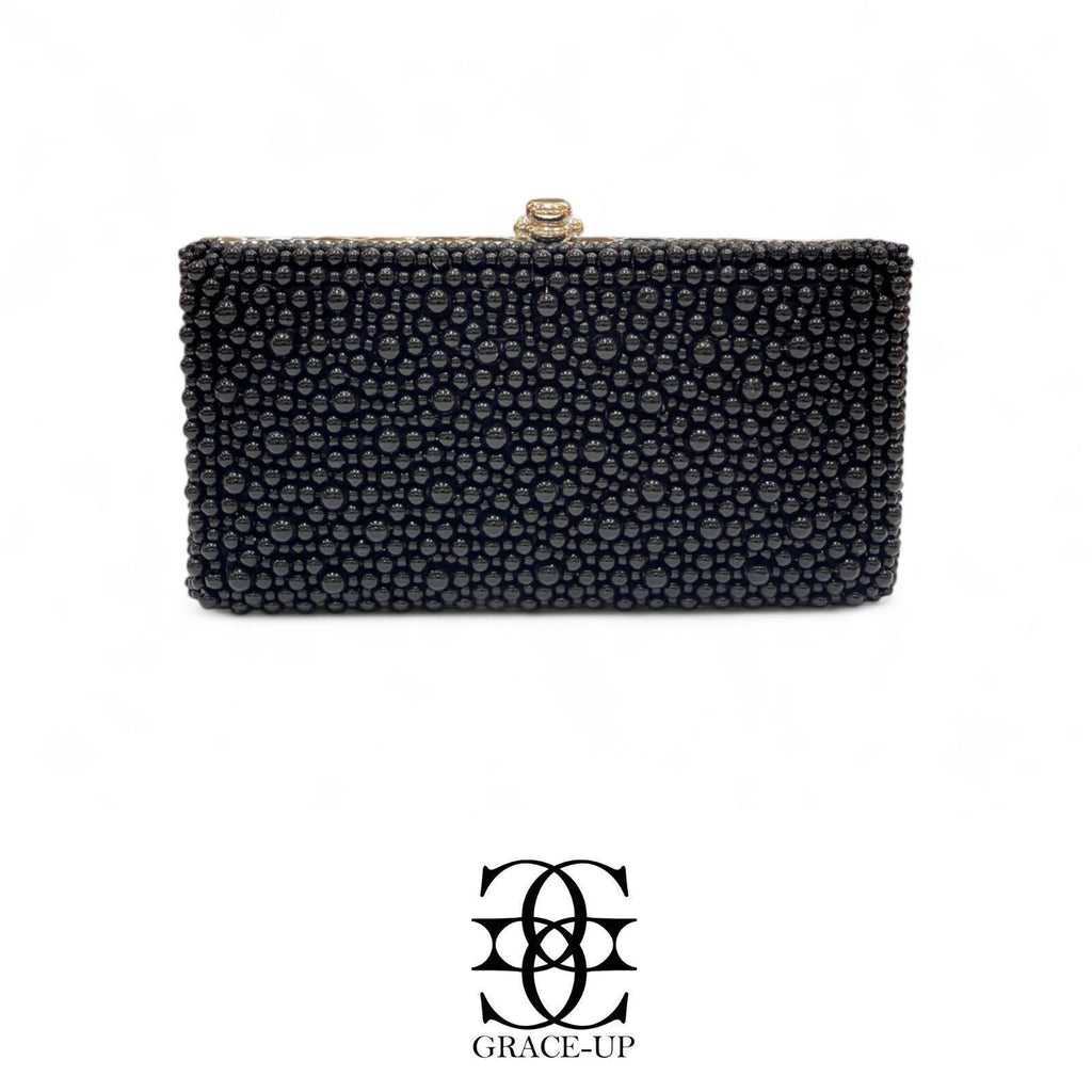 A perfect clutch for Brides! Featured full black pearls single side & metal case. Contains complementary bangle for hassle free wear!