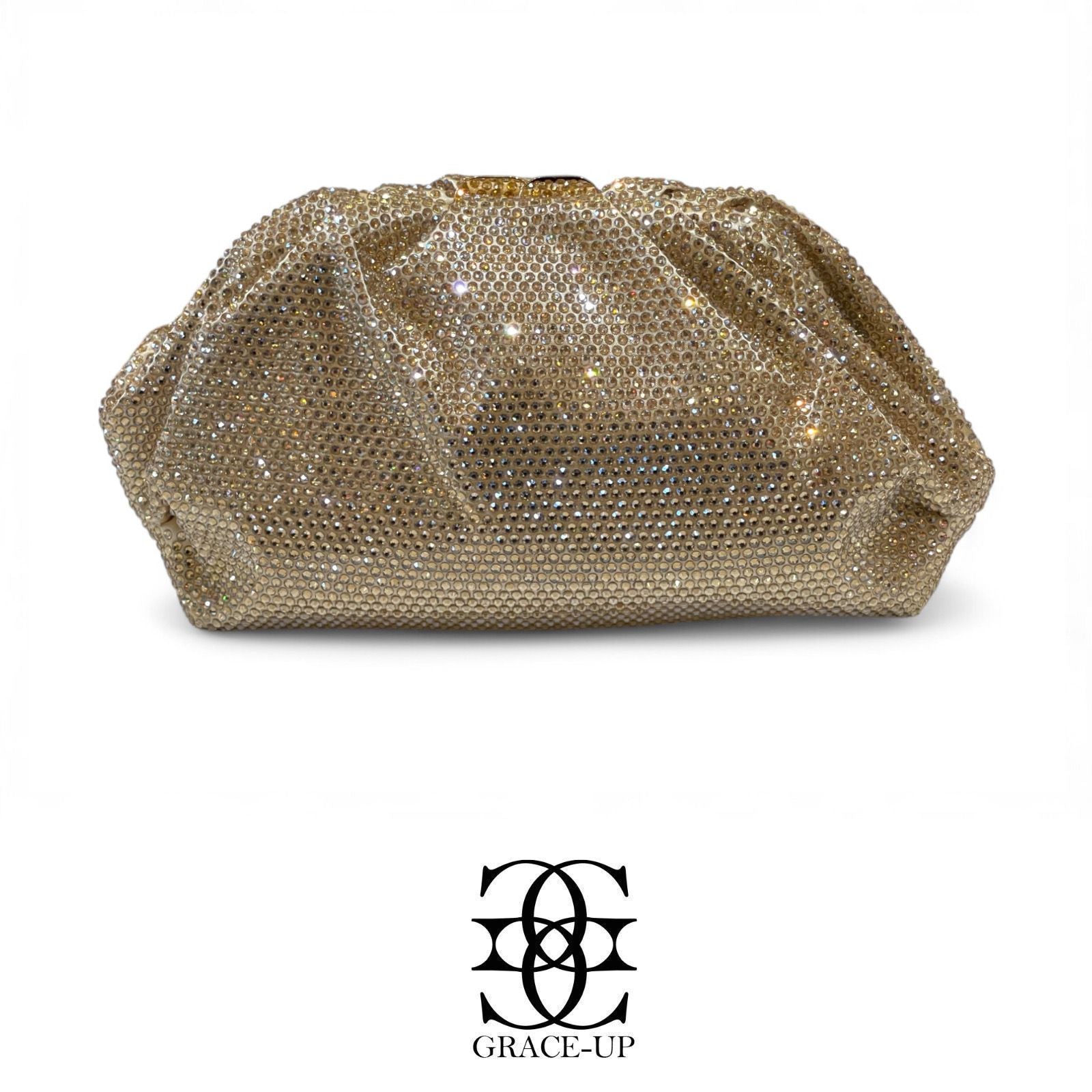A perfect premium clutch for Brides! Featured with golden rhinestones double sided & fall bag design . Contains complimentary chain for hassle free wear.