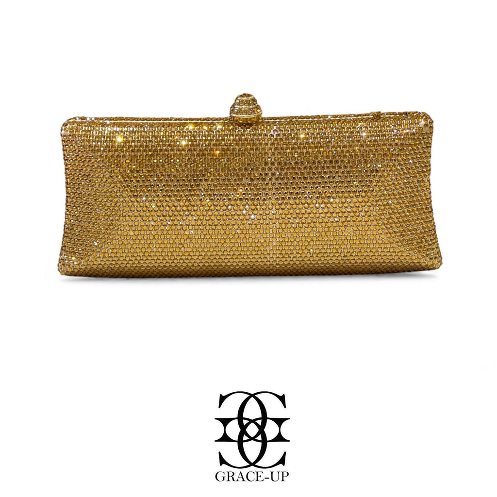A perfect premium clutch for Brides! Featured with gold double sided rhinestones & metal stone nob. Contains complimentary chain for hassle free wear.