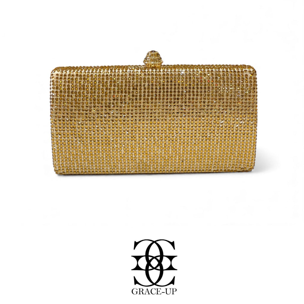 A perfect premium clutch for Brides! Featured with gold double sided rhinestones & metal stone nob. Contains complimentary chain for hassle free wear.