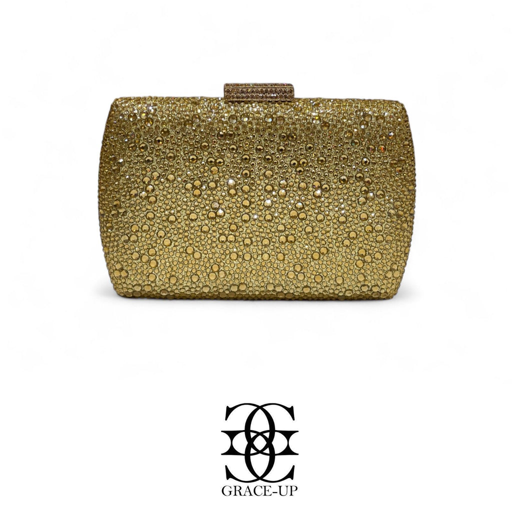 A perfect premium clutch for Brides! Featured with gold double sided rhinestones & metal stones nob. Contains complimentary chain for hassle free wear.