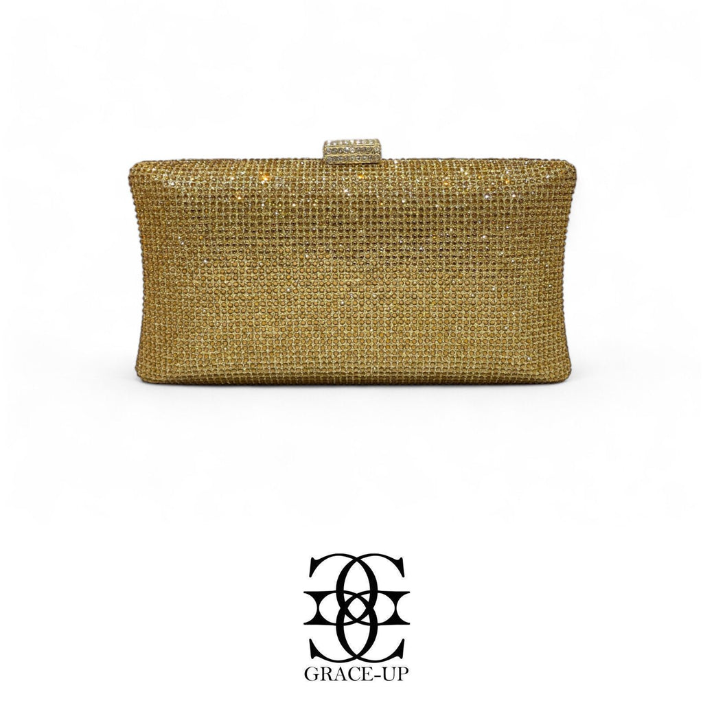 A perfect premium clutch for Brides! Featured with gold double sided rhinestones & metal stones nob. Contains complimentary chain for hassle free wear.