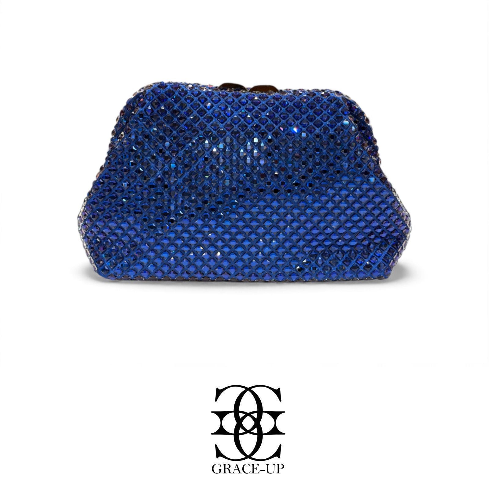 A perfect premium clutch for Brides! Featured with blue big rhinestones double sided & fall bag design . Contains complimentary chain for hassle free wear.