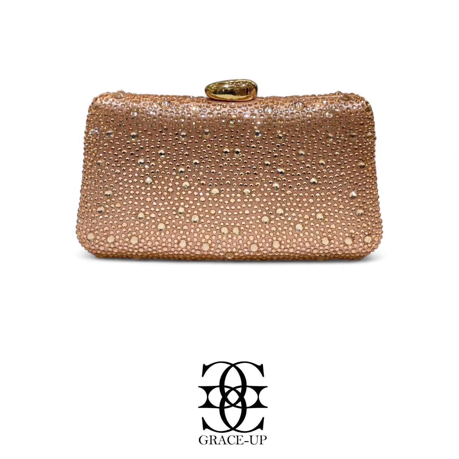 A perfect premium clutch for Brides! Featured with rose gold double sided rhinestones & metal nob. Contains complimentary chain for hassle free wear.
