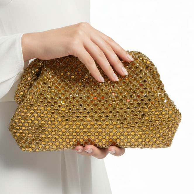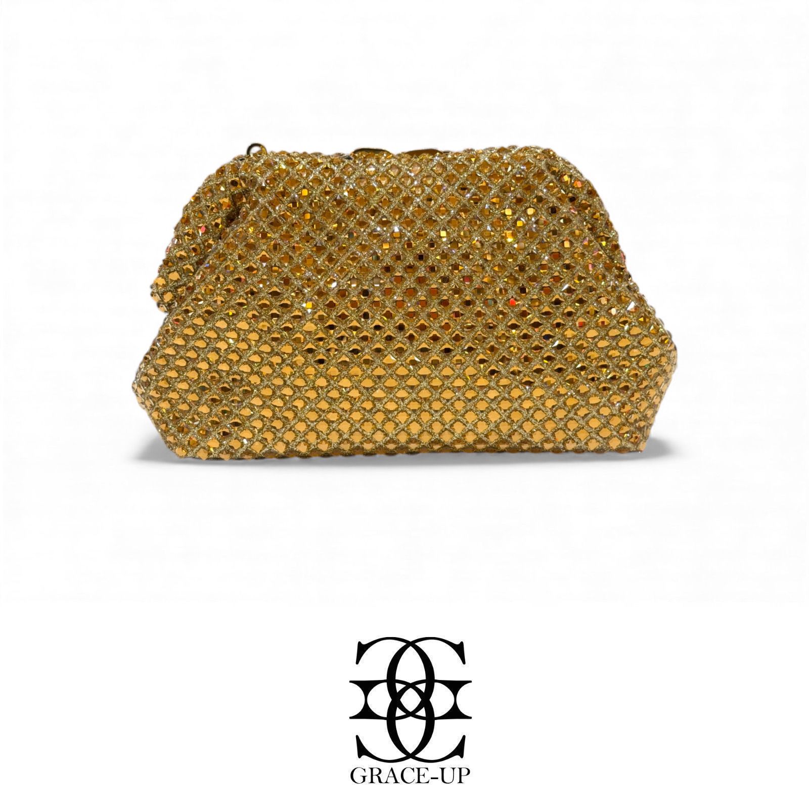 A perfect premium clutch for Brides! Featured with golden big rhinestones double sided & fall bag design . Contains complimentary chain for hassle free wear.