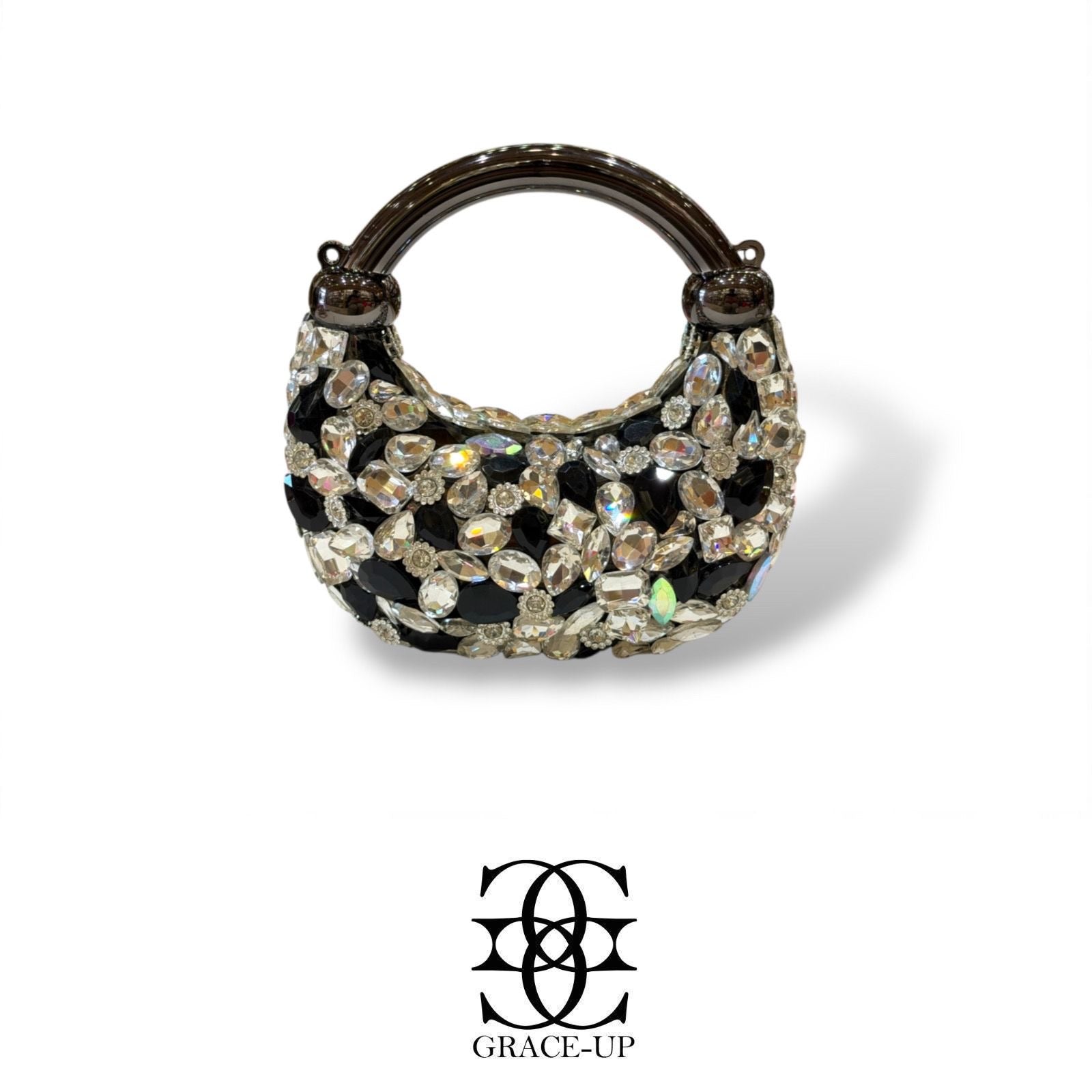 A perfect bag for bridal wear! Featured fully covered with black/silver sparkling big stones .contains complementary chain for hassle free wear!