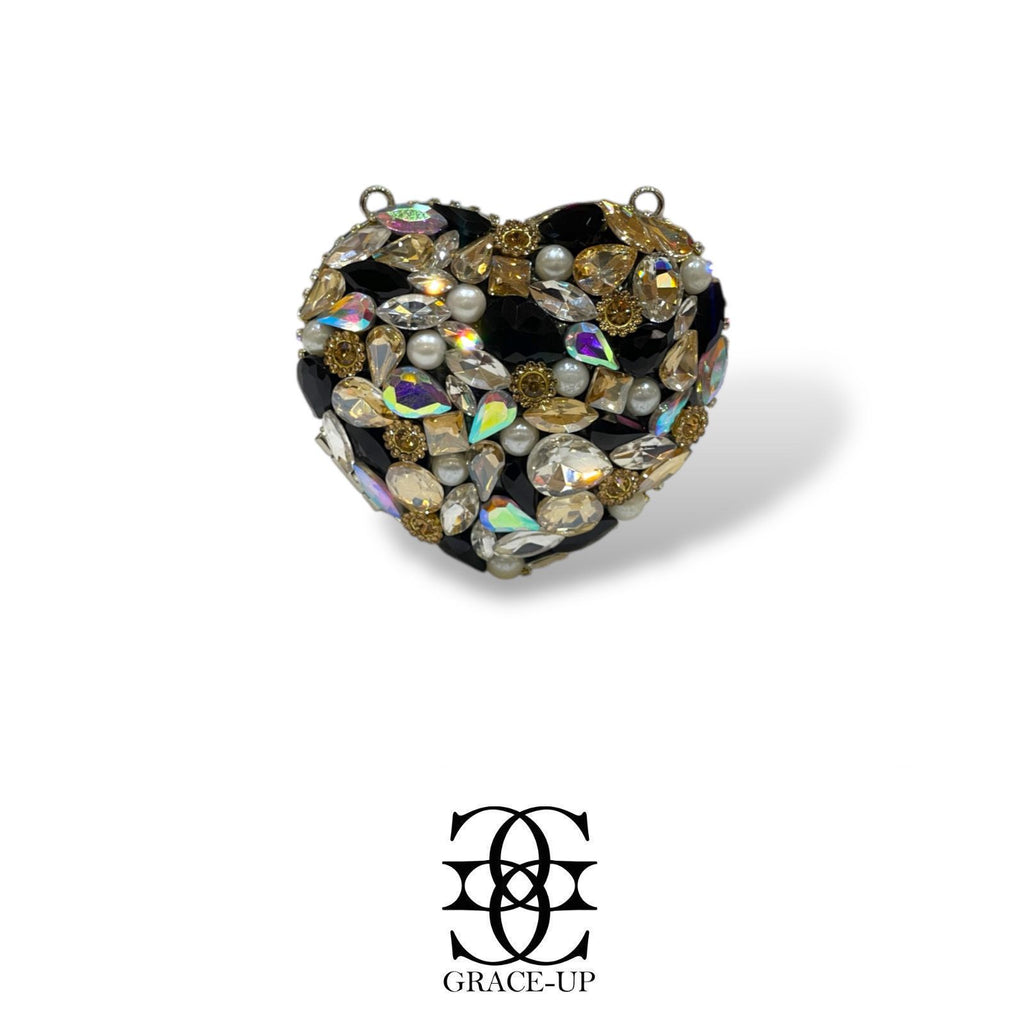 A perfect clutch for party wear ! Featured black/silver stones single side & heart shaped metal case. Contains complimentary chain for hassle free wear!