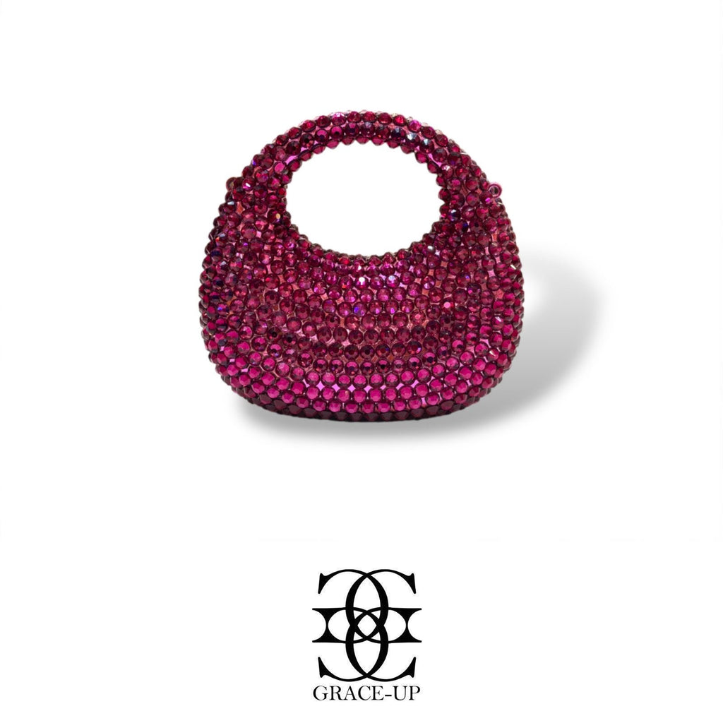 A perfect bag for bridal wear! Featured fully covered with hot pink sparkling rhinestones .contains complementary chain for hassle free wear!