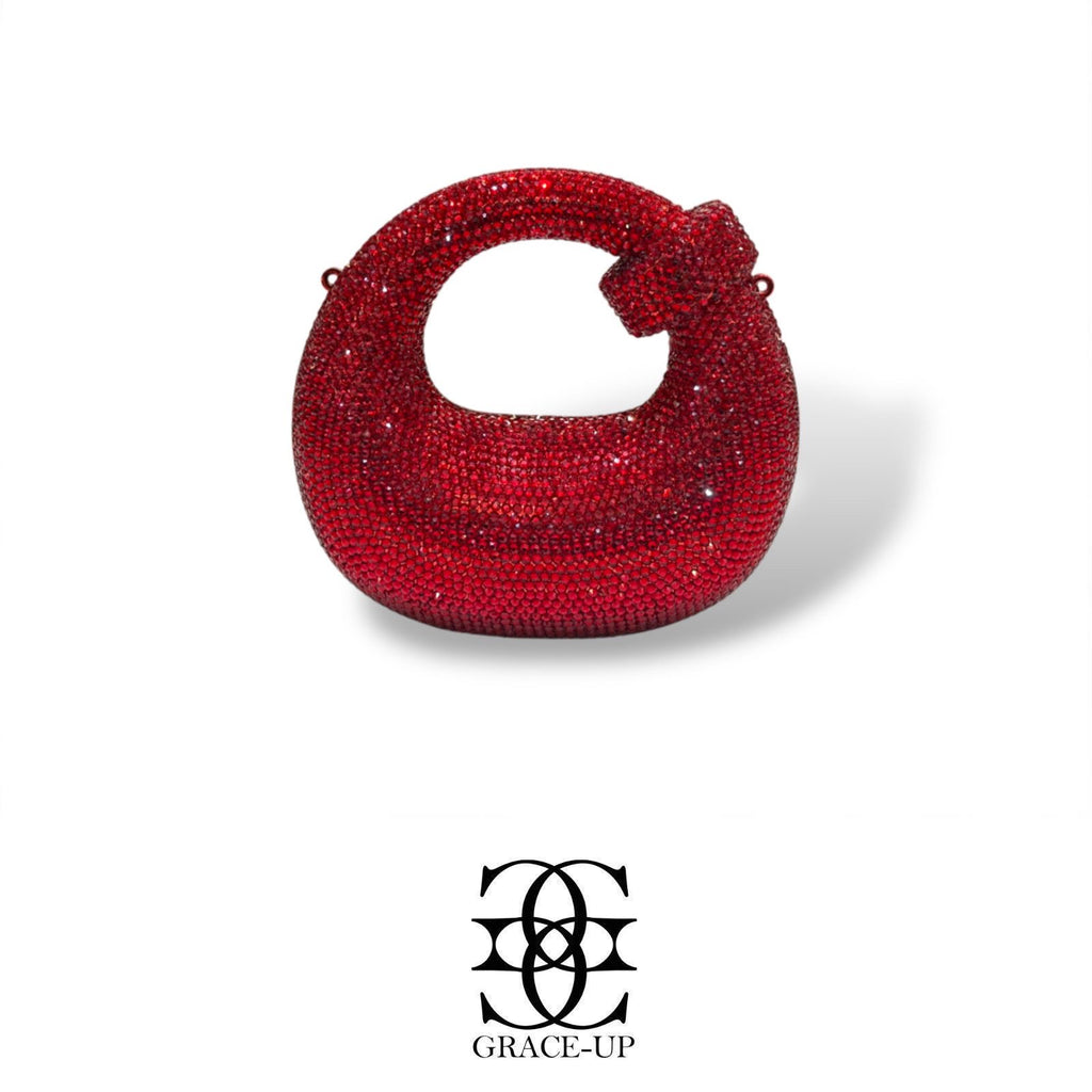 A perfect bag for bridal wear! Featured fully covered with maroon sparkling rhinestones .contains complementary chain for hassle free wear!