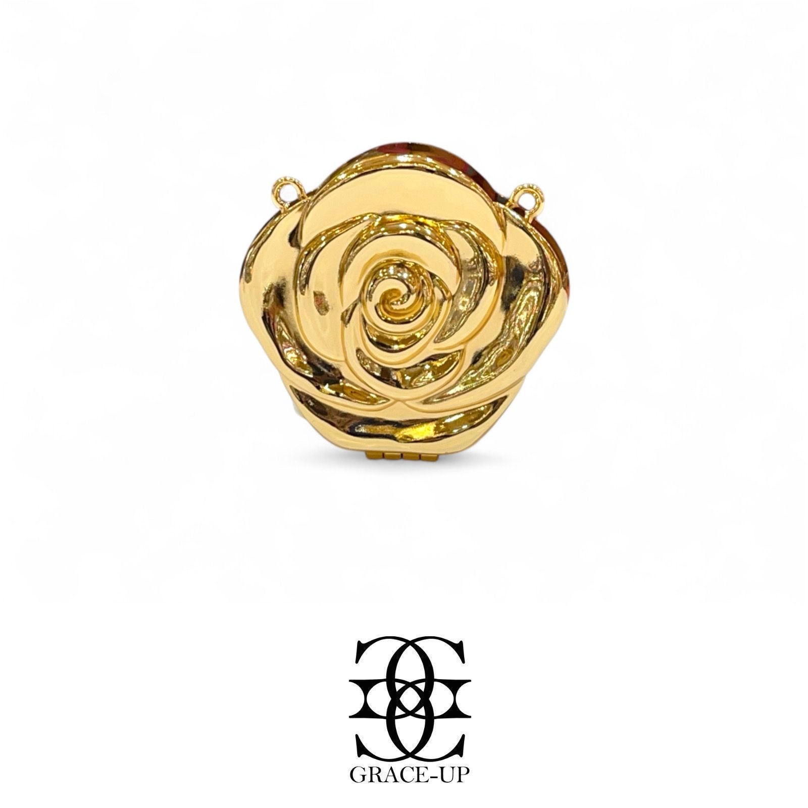 A perfect clutch for party wear ! Featured gold color & rose shaped metal case. Contains complimentary chain for hassle free wear!
