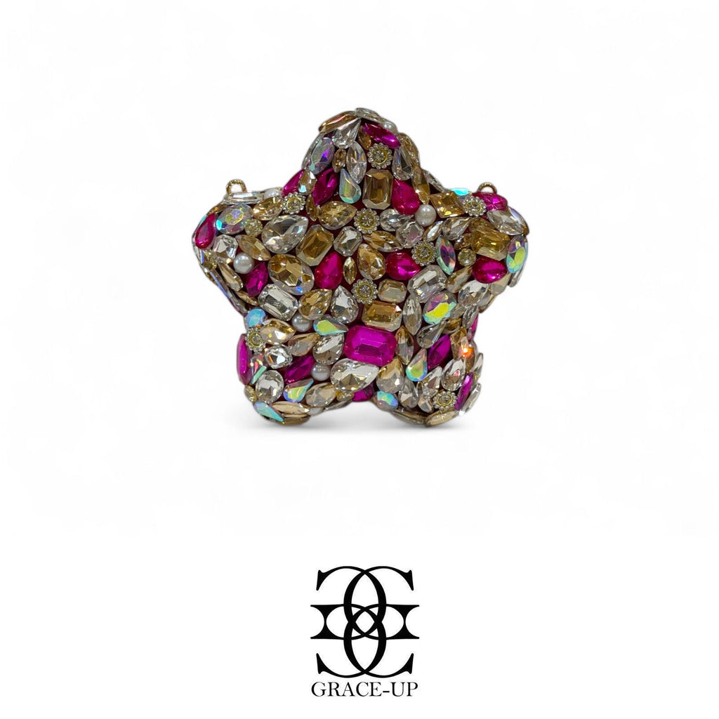 A perfect clutch for party wear ! Featured hot pink & silver stones single side & star shaped metal case. Contains complimentary chain for hassle free wear!