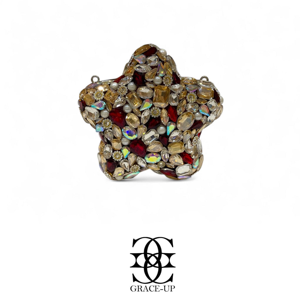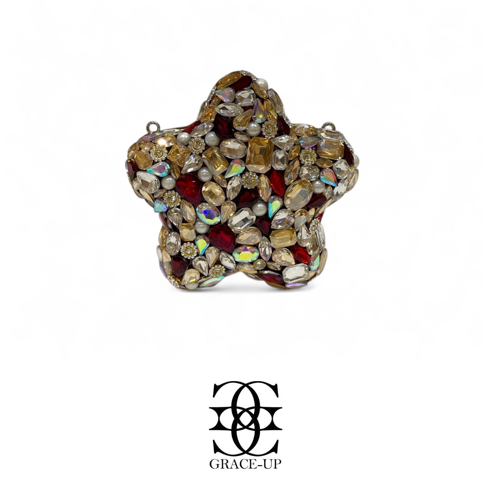 A perfect clutch for party wear ! Featured maroon & silver stones single side & star shaped metal case. Contains complimentary chain for hassle free wear!