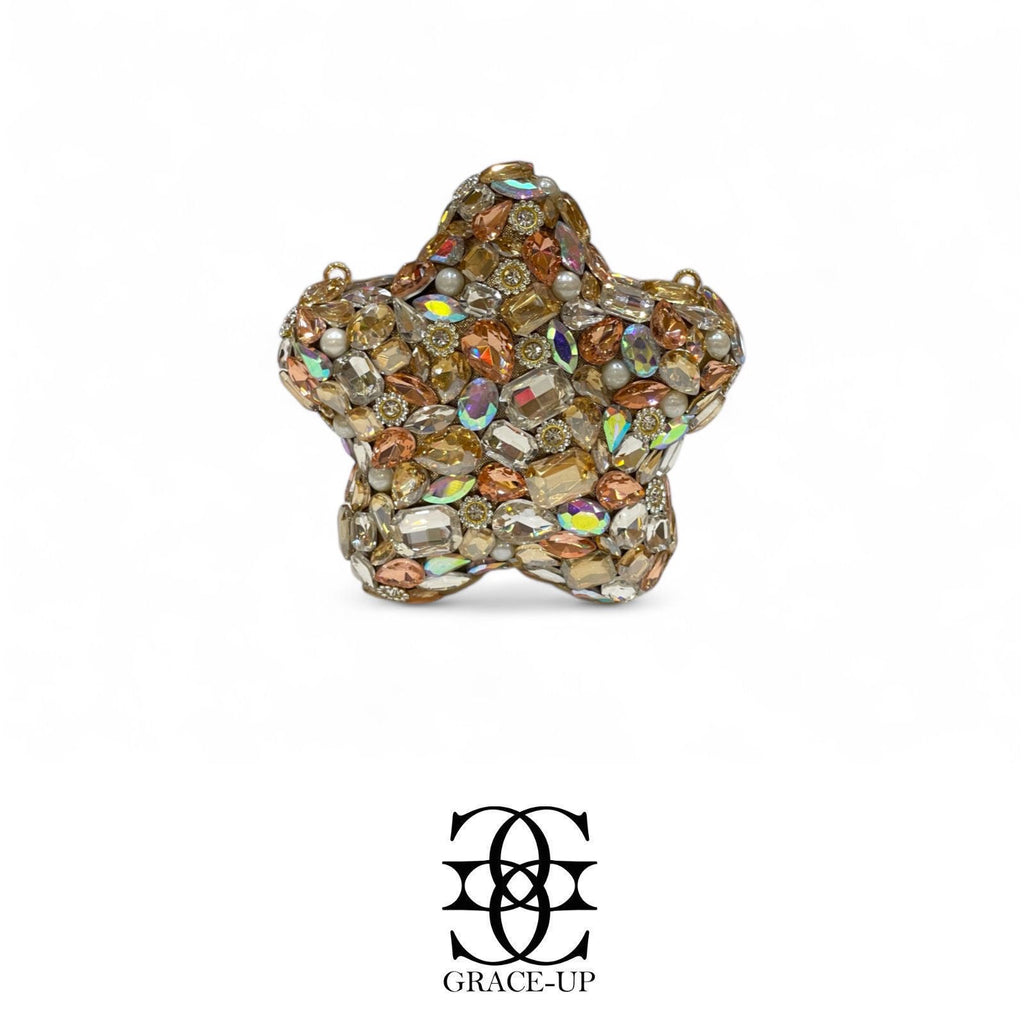 A perfect clutch for party wear ! Featured peach & silver stones single side & star shaped metal case. Contains complimentary chain for hassle free wear!