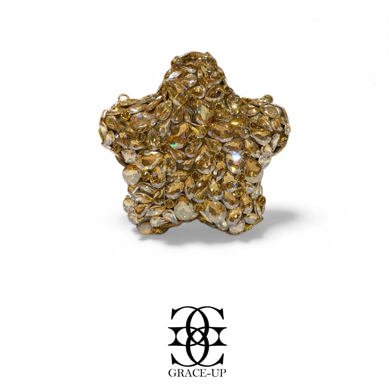 A perfect clutch for party wear ! Featured gold stones single side & star shaped metal case. Contains complimentary chain for hassle free wear!