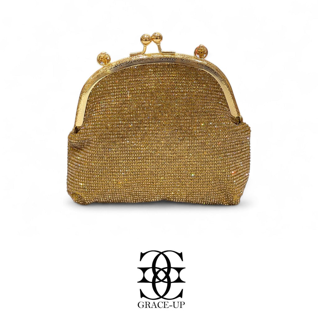 A perfect soft clutch for party wear ! Covered with full golden double sided stones & a classic metal lock.contains complementary bangle Vohra hassle free wear!