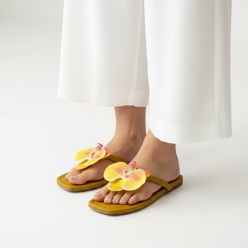 Introducing the Grace Up Flats 0604, the perfect addition to any outfit. These flats feature a beautiful synthetic flower for a touch of elegance. Made with high-quality materials, they are comfortable and durable. Elevate your style with these stylish and versatile flats.