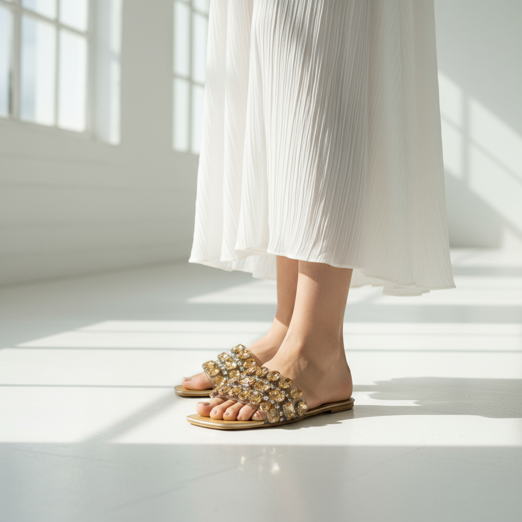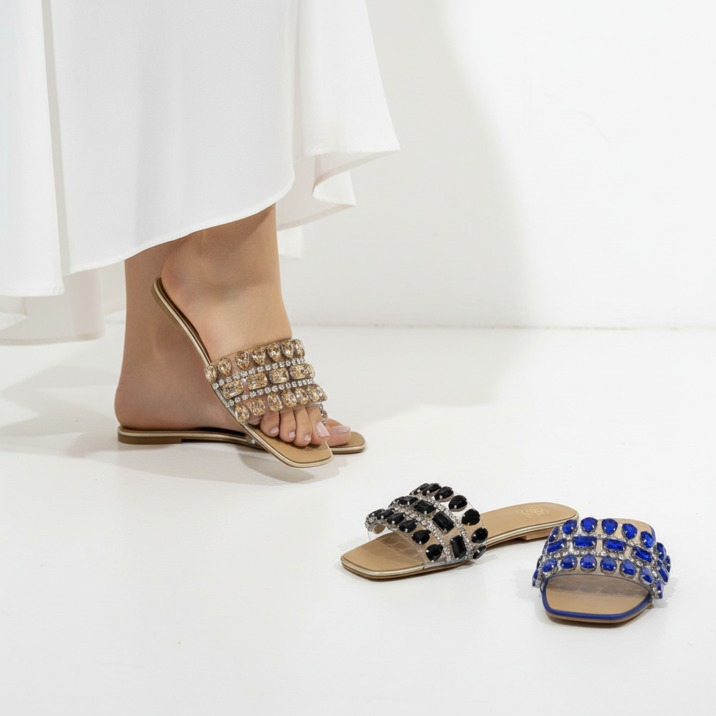 Introducing our Grace Up Flats 0788: the perfect combination of style and comfort. These transparent flats feature elegant stones that add a touch of glamour to any outfit. Made with high-quality materials, these flats are a must-have for any fashion-forward individual. Upgrade your wardrobe today!