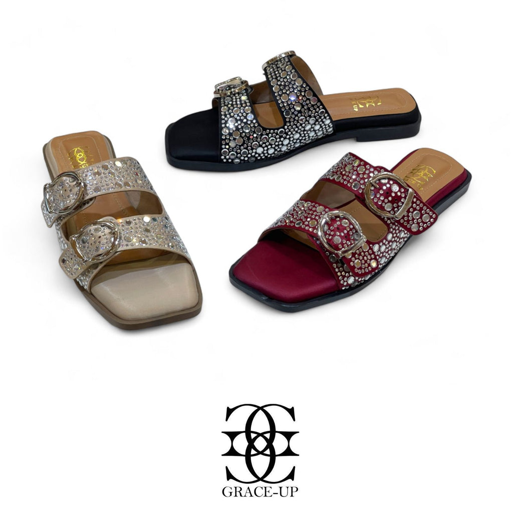 The Grace Up Flats 0780 offer a stylish and comfortable option for everyday wear. With their double strap design and stunning rhinestones, these flats provide a secure fit while adding a touch of glamour. Perfect for those looking for both fashion and function in their footwear.