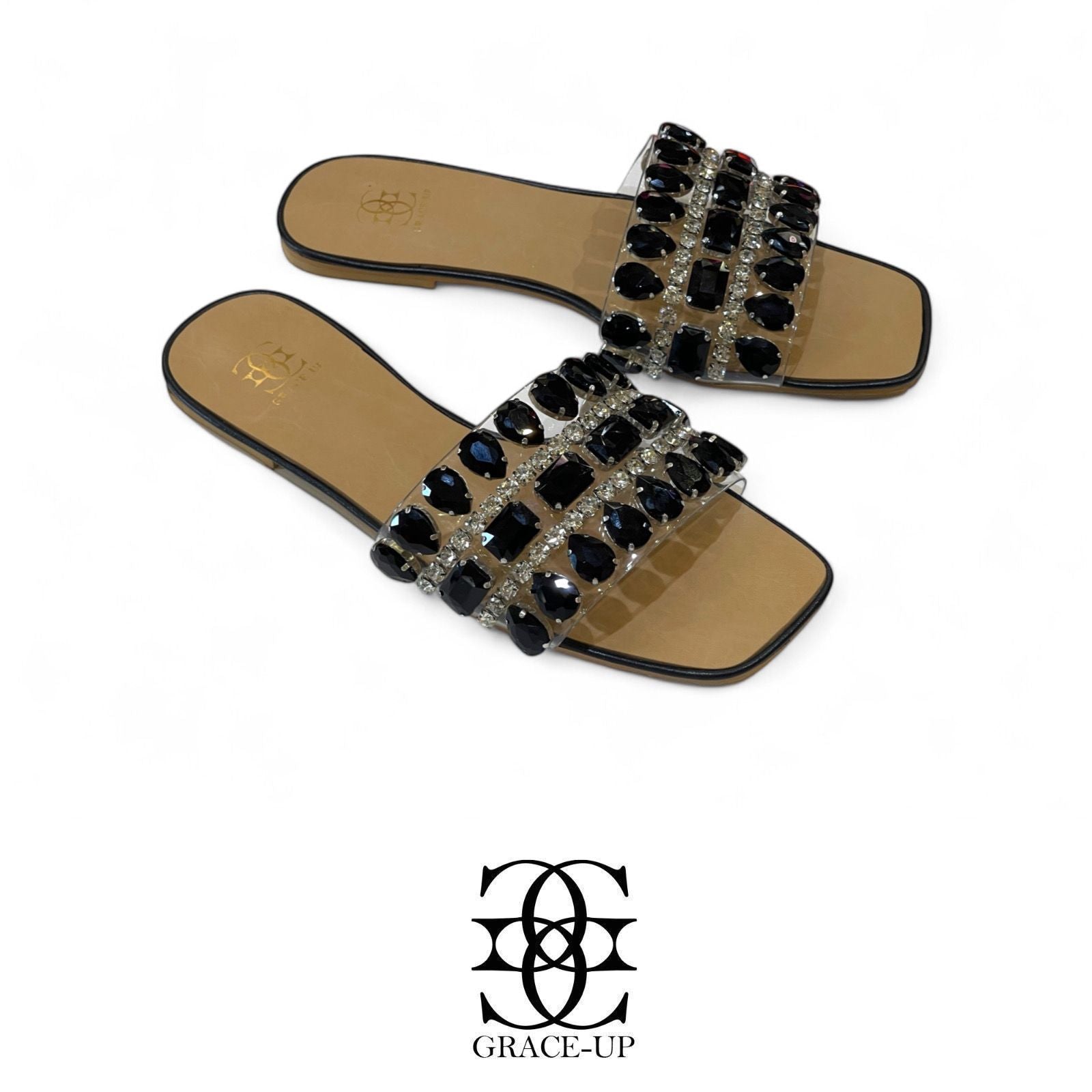 Introducing our Grace Up Flats 0788: the perfect combination of style and comfort. These transparent flats feature elegant stones that add a touch of glamour to any outfit. Made with high-quality materials, these flats are a must-have for any fashion-forward individual. Upgrade your wardrobe today!