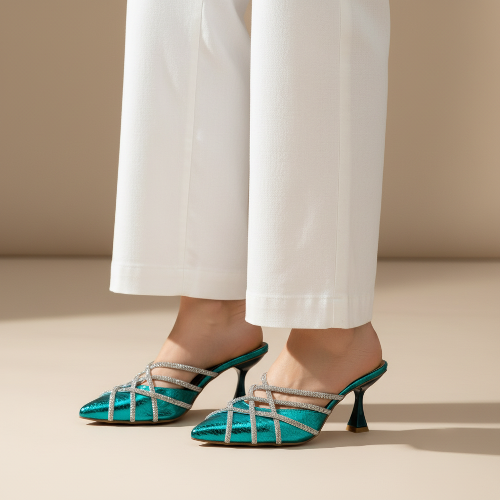 Grace Up Flats 0456 combines style and comfort with its cut shoes and stones web design. These flats are perfect for any occasion, providing both elegance and support for your feet. Elevate your fashion game with Grace Up Flats 0456.