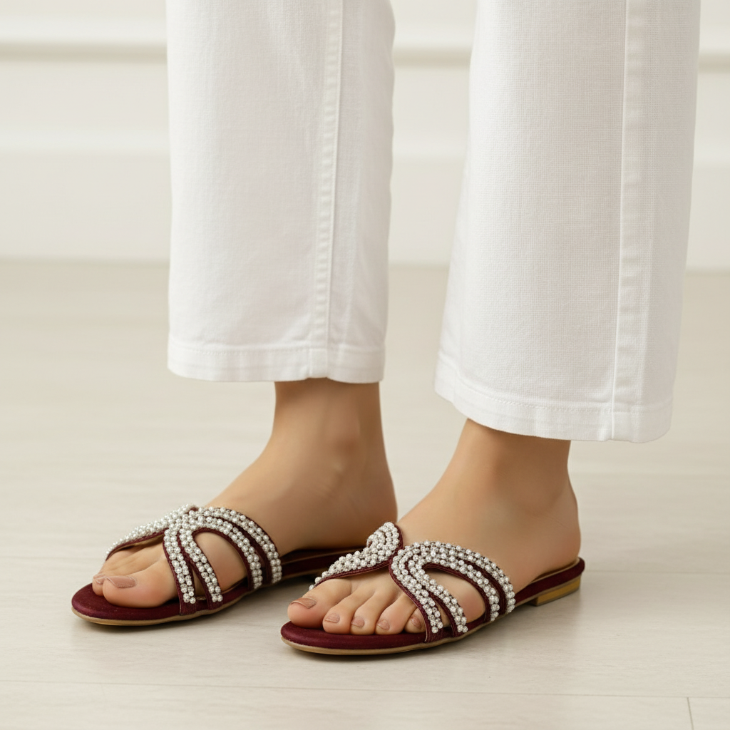 Upgrade your shoe game with Grace Up Flats 0735. These elegant flats feature delicate pearls and stones embroidery, adding a touch of sophistication to any outfit. Perfect for any occasion, these flats are a must-have for a stylish and polished look.