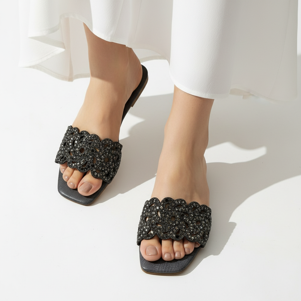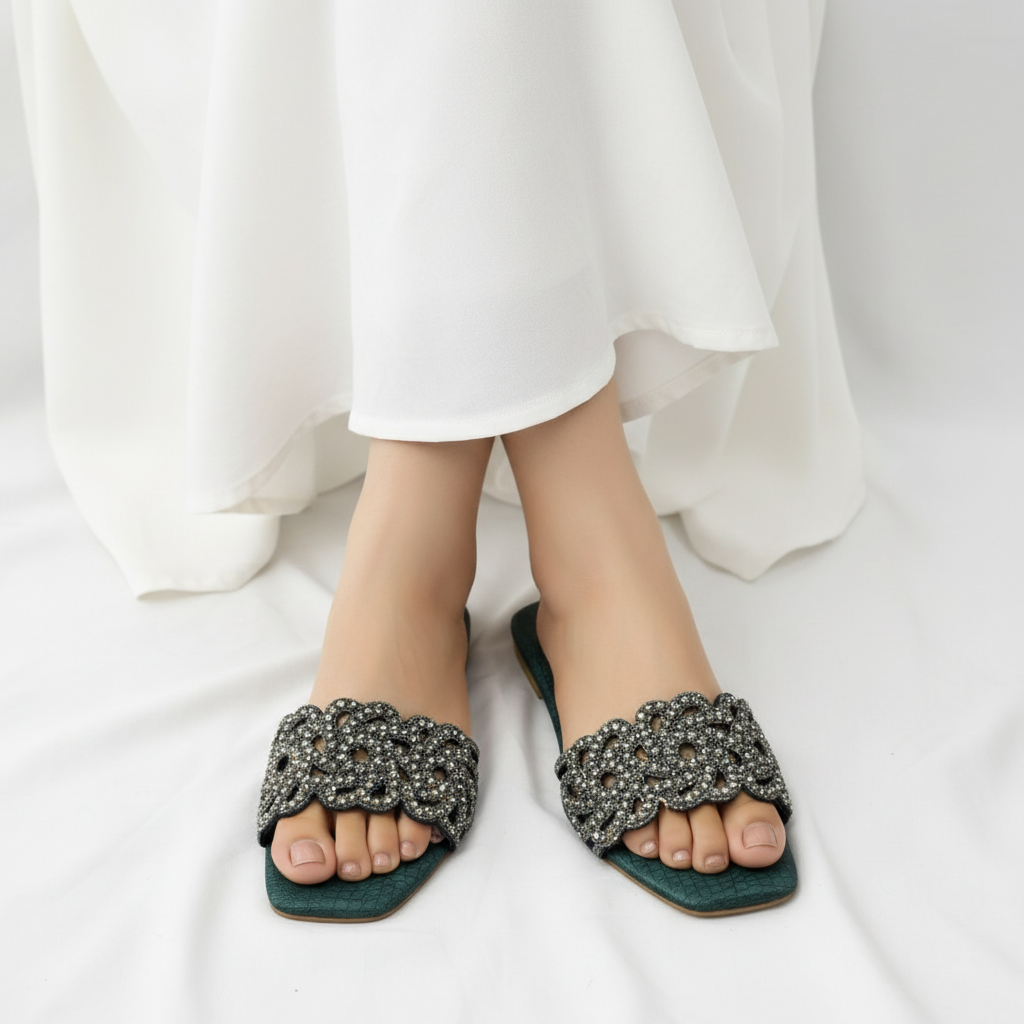 Expertly crafted, Grace Up Flats 0771 combine exquisite cut work with sparkling rhinestones for a touch of glamour. The cushion padded sole provides unparalleled comfort, making these flats a stylish and practical addition to any wardrobe. Upgrade your shoe collection with these versatile and elegant flats.