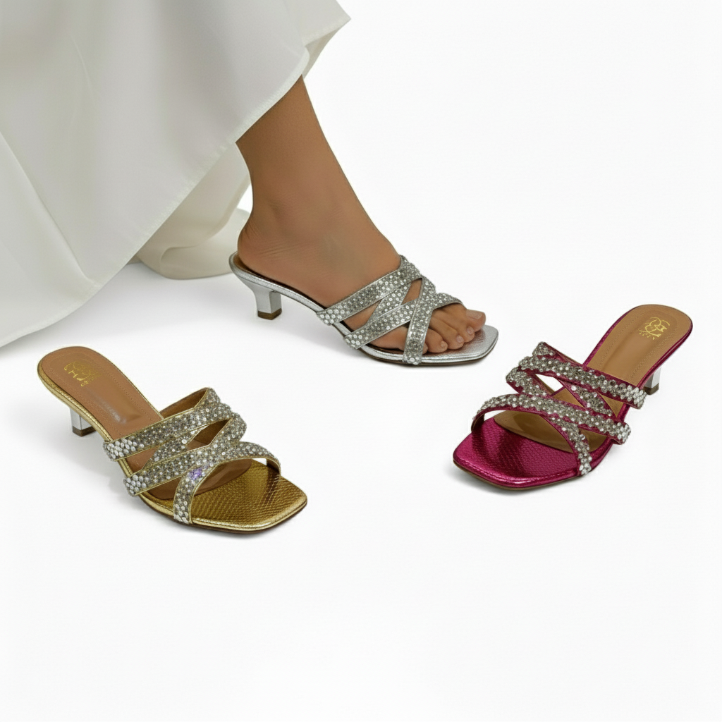 These Grace Up Heels 0878 feature a textured base and elegant kitten heels adorned with sparkling stones, adding a touch of sophistication to any outfit. The textured base provides enhanced grip, while the kitten heels offer a comfortable and stylish height boost. Perfect for adding some glamour to your wardrobe.