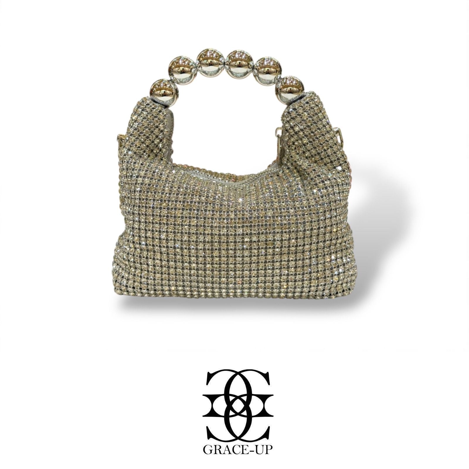 A perfect premium clutch for Brides! Featured with silver big rhinestones double sided & stylish metallic handle design . Contains complimentary chain for hassle free wear.