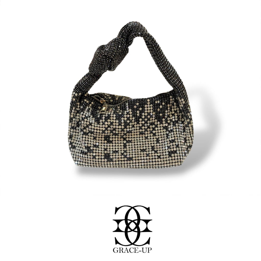 A perfect bag for bridal wear! Featured black/silver mix double sided big stones & full stones with knot handle.contains complementary chain for hassle free wear!
