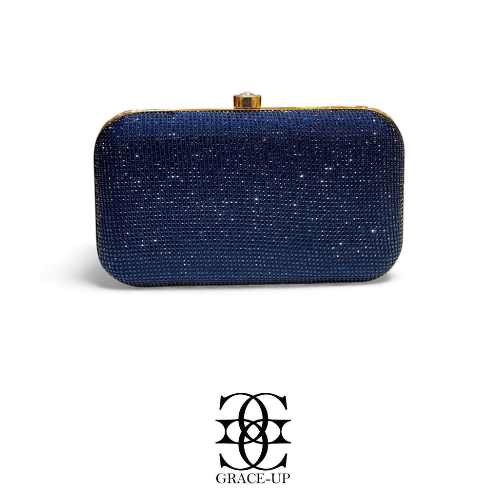 A perfect clutch for bridal use ! Featured blue double sided rhinestones & metal case. Contains complimentary bangle for hassle free wear!