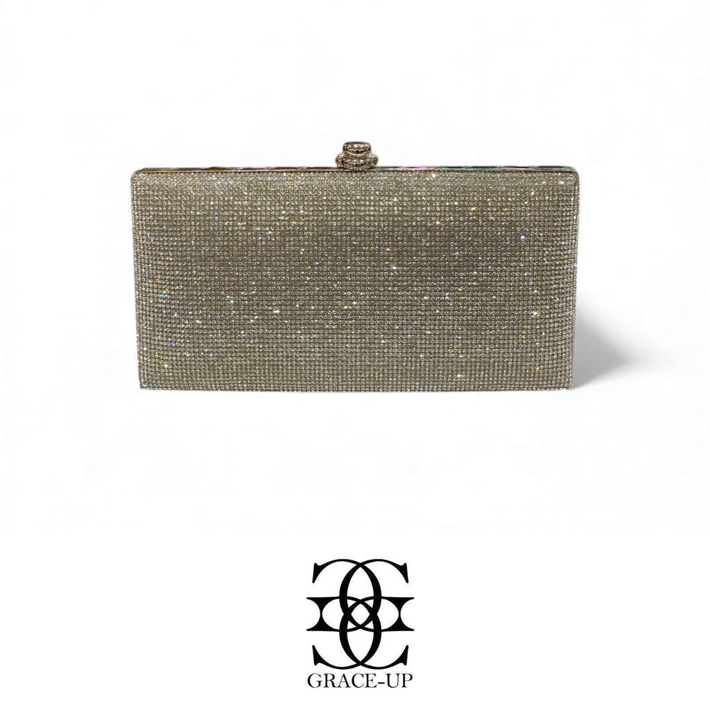 A perfect clutch for brides ! Featured silver stones double sided & metal case. Contains complimentary bangle for hassle free wear!