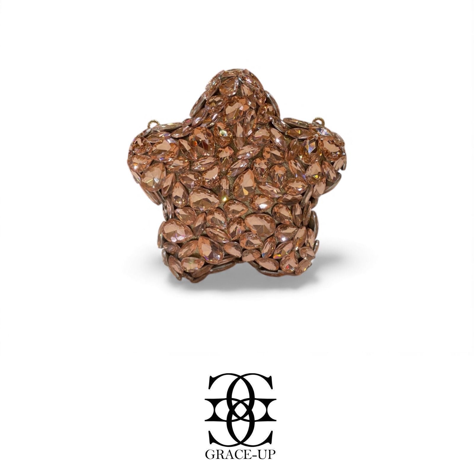 A perfect clutch for party wear ! Featured peach stones single side & star shaped metal case. Contains complimentary chain for hassle free wear!